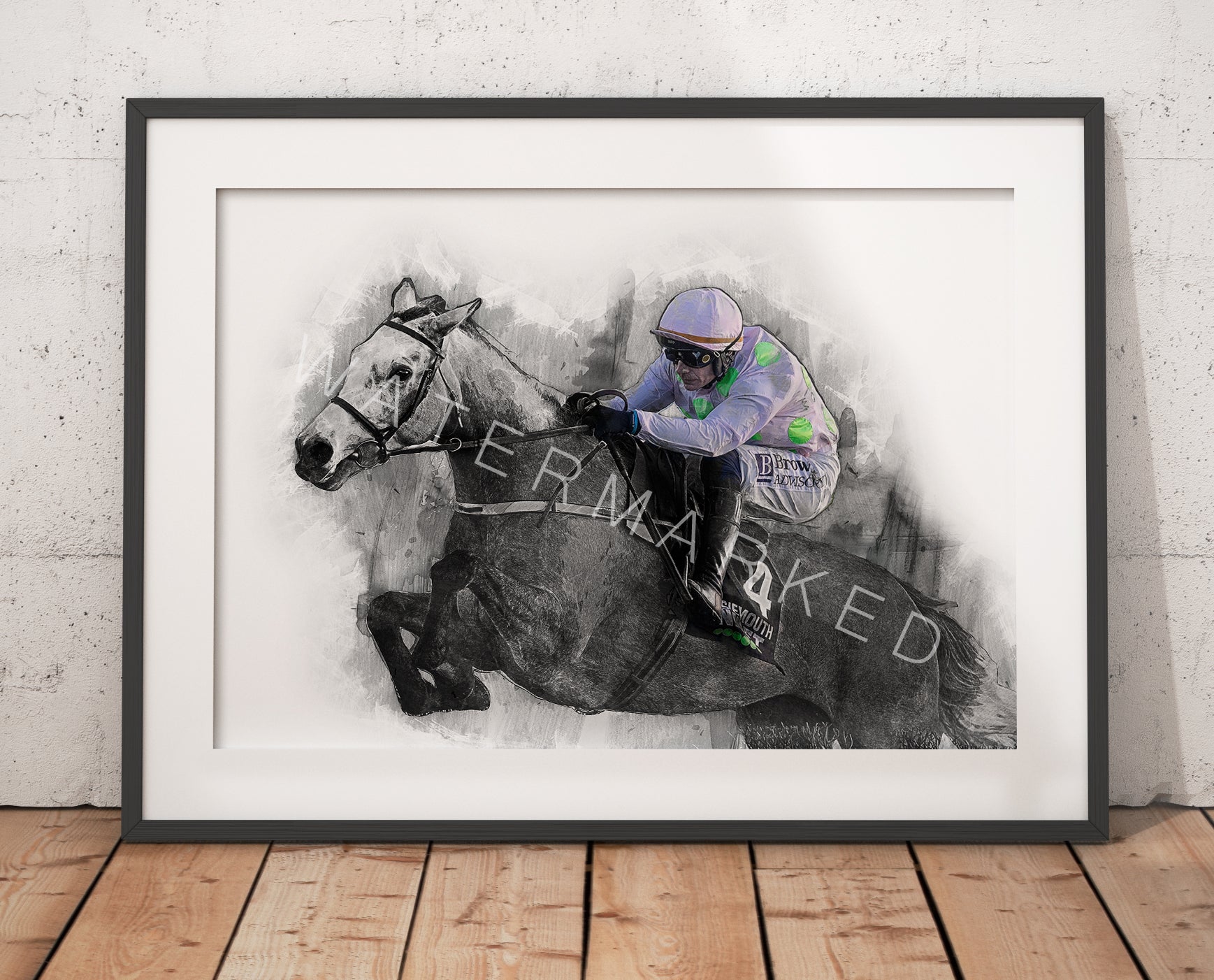 Exclusive bespoke digital graphic sketch print. This digital horse racing piece has been created as a one of a kind digital art print. Perfect for all horse racing fans.